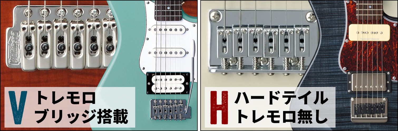 Vならトレモロ・ブリッジ、Hならハードテイル(トレモロ無し)になります。