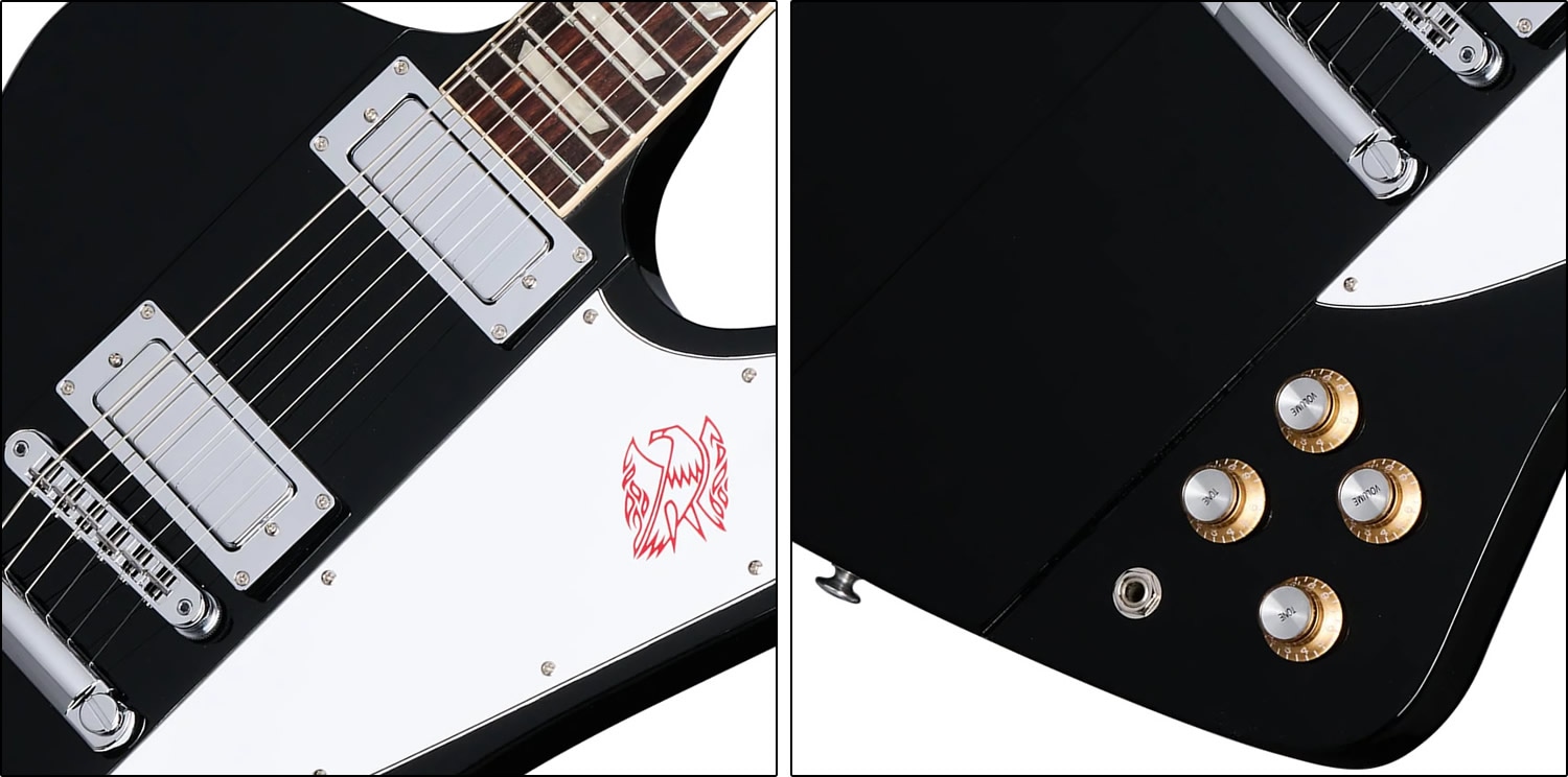 ファイアーバードは最も特徴的なルックスを誇るギター・デザインの一つであり、Firebird Platypusはその独自の外観とともに、この伝説的なギターをさらに一段階先へと導きます。トーンもルックス同様にユニークになっています。歯切れが良く、製造当時の仕様に忠実なアルニコ5のファイアーバード・ミニハムバッカー™ピックアップを2基搭載し、クリーンで演奏したときには鐘のような鈴鳴り感あるサウンドを、歪ませたときにはバンドアンサンブルでも際立つロックやブルースに最適なトーンを奏でます。ピックアップごとに独立したボリュームとトーンを備えているため、細やかなサウンド・メイキングが可能となっており、ピックガードにはおなじみのファイアーバード(火の鳥)のグラフィクスがホット・スタンピング(箔押し)により刻印されています。