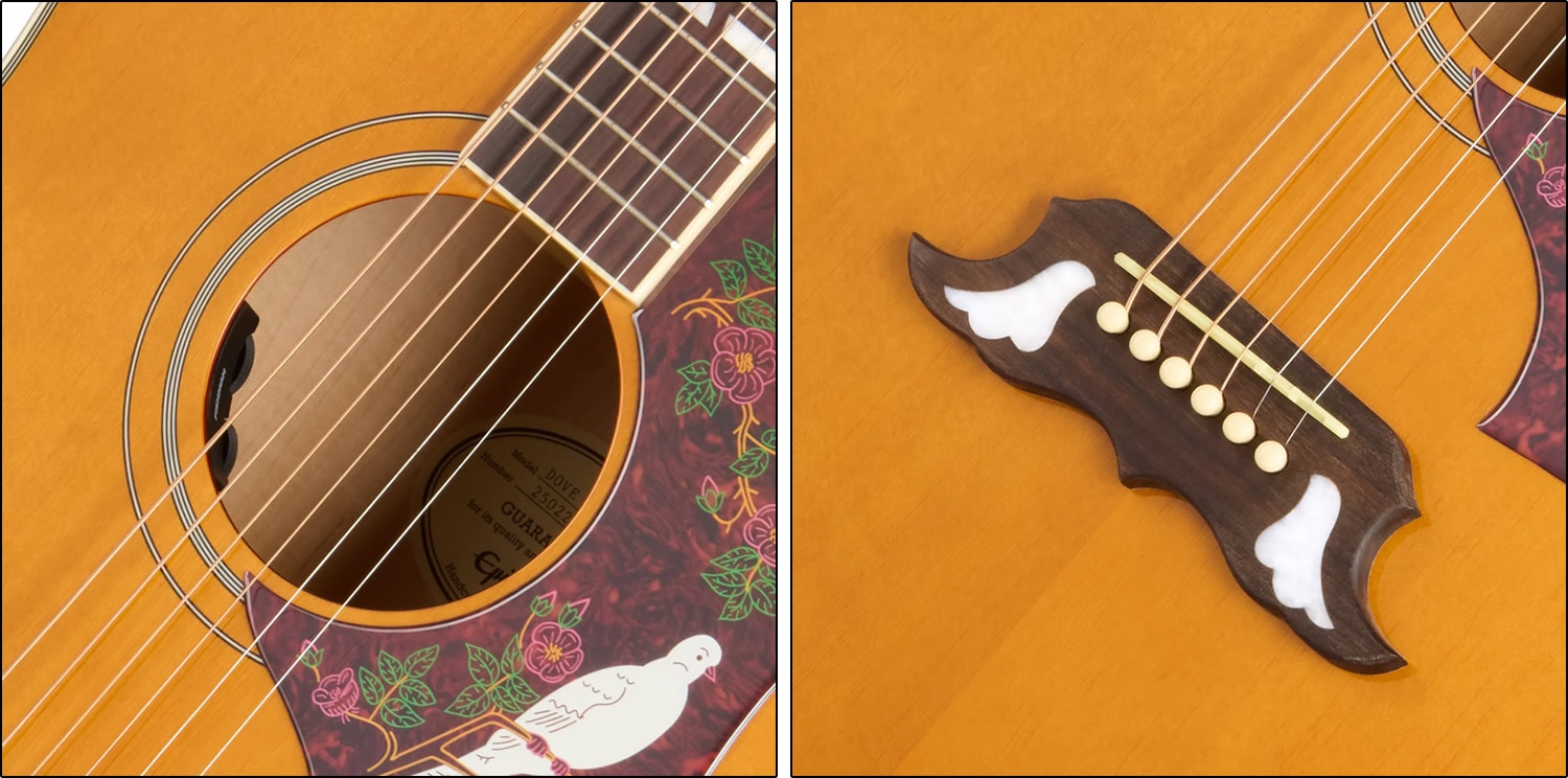 本家であるギブソン Dove は、1962年にカラマズーにあった伝説のギブソン&エピフォン工場で最初に製造され、ロックンロールの定番モデルとして認知されるようになった、最初のアコースティックギターのひとつとなりました。