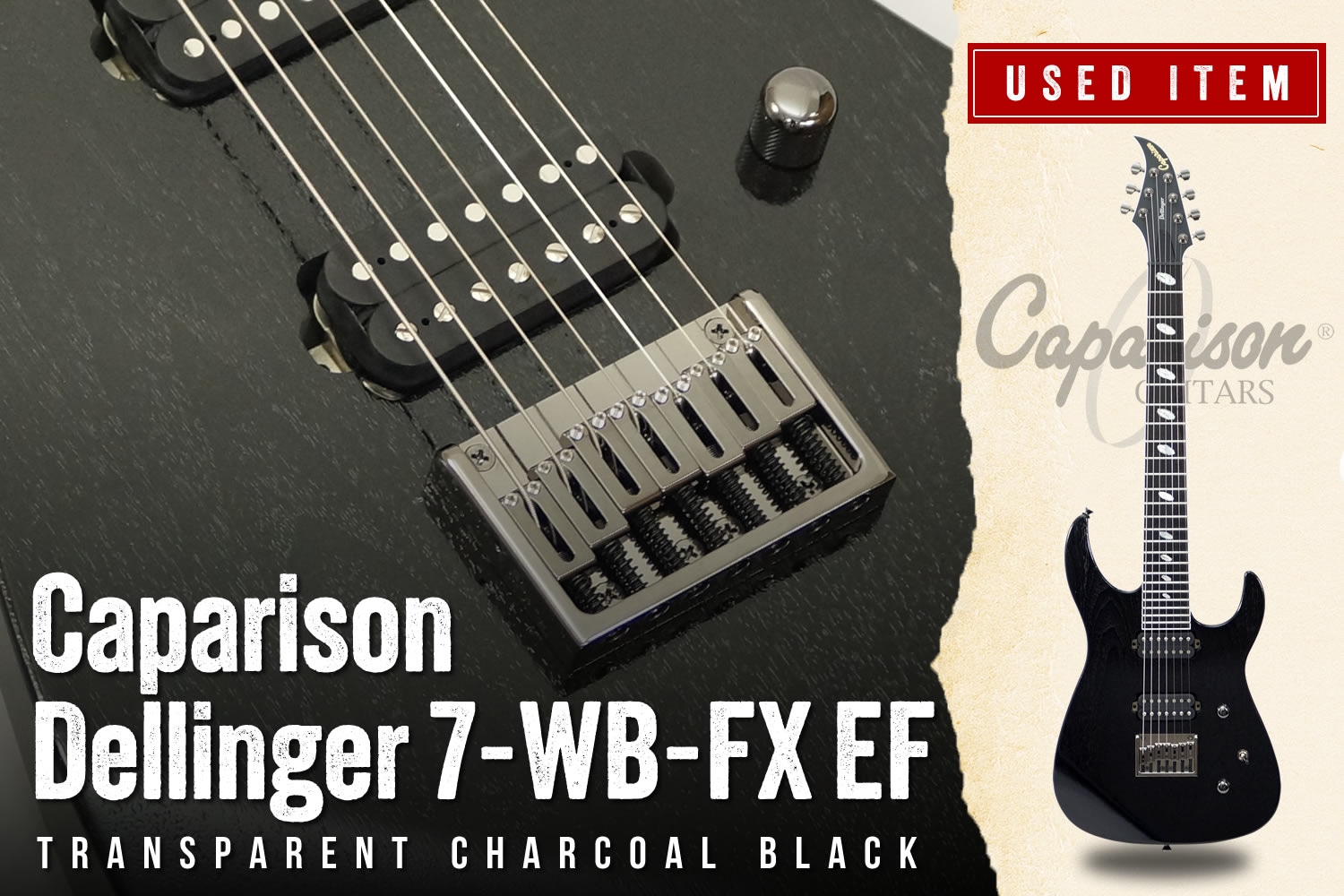 キャパリソンによる7弦ギター「Caparison Dellinger 7-WB-FX」が中古で入荷!しかもコチラは、幅広いチューニングに対応可能なフィックスド・ブリッジ仕様です!