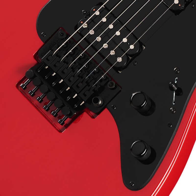 ネックはサーマリー・エイジド処理が施され、エリプティカルCプロファイルを採用。指板にはメイプルを使用し、24本のジャンボ・フレット、指板面はコンパウンド・ラジアス(10”-14”)を採用しています。トラスロッドはボディ側の指板エンド部にスポーク・ホイール式のトラスロッド調整ナットを搭載しており、素早い調整が可能です。スケールは25.5インチで、ドロップチューニングにも適しています。Floyd Rose® R3ロッキングナットと1000シリーズ・トレモロにより、アグレッシブなアーミングにも高いチューニングの安定性を誇ります。