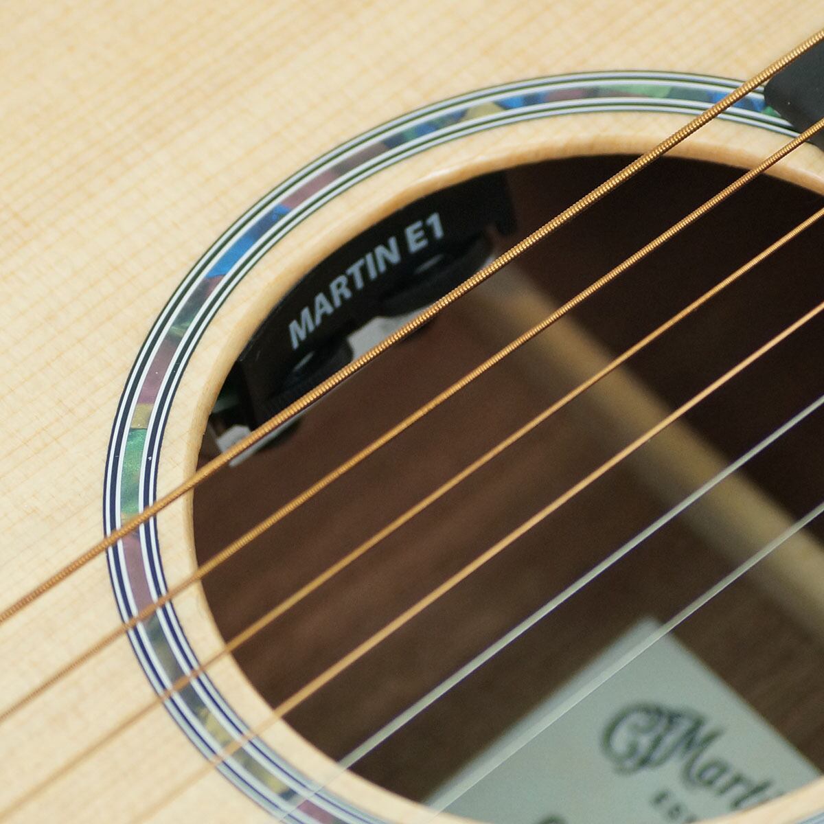 ・Martin E1 ピックアップシステムを搭載し、内蔵チューナー付き。アンプやPAに接続した際も、自分のサウンドを細かくコントロールできます。