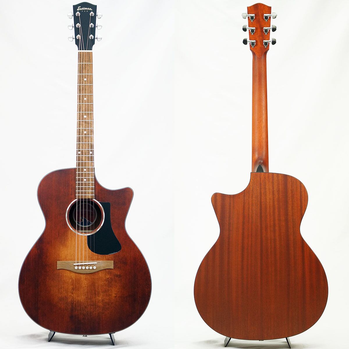 イーストマンによる洗練されたシルエットが美しいモダン仕様のグランドオーディトリアム。こちらの「PCH1-GACE」は、リーズナブルな価格帯ながらも、サーモウッド加工(木材を高熱で処理して耐久性や寸法安定性を向上させる加工技術)が施されたシトカ・スプルースをトップ材に採用する事で、心地良い生鳴りを楽しめる、オススメの1本です。また、フィッシュマンによるピックアップシステムも搭載したエレアコ仕様となっており、ライブに宅録にと、幅広い用途で活躍できます。