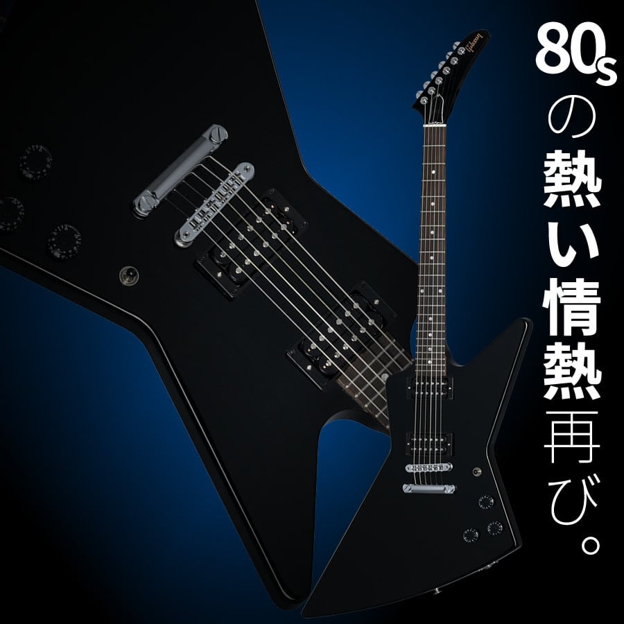 本家ギブソンによる 1980s スタイル・エクスプローラー「Gibson 80s Explorer」!エボニーブラックカラーにピックガードを廃した精悍なルックスが、80s HR/HMの情熱を蘇らせる「熱い」1本です!