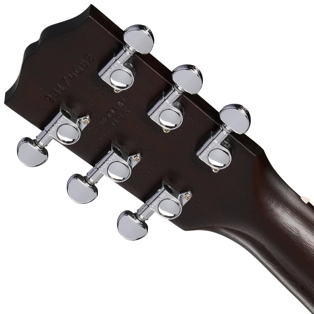 ユーリー材を使用したネックはダブテイル・ジョイント方式によりボディに接合され、他のギブソン・アコースティックギターと同じく、ニカワにより接着されています。ネック・シェイプには心地よくスムーズな演奏を可能にするスリムテーパー™プロファイルを採用。12インチ・ラジアス形状の指板にはローズウッドを使用し、マザーオブパールのドット・インレイが埋め込まれ、スタンダード・フレットの19フレット仕様となっています。