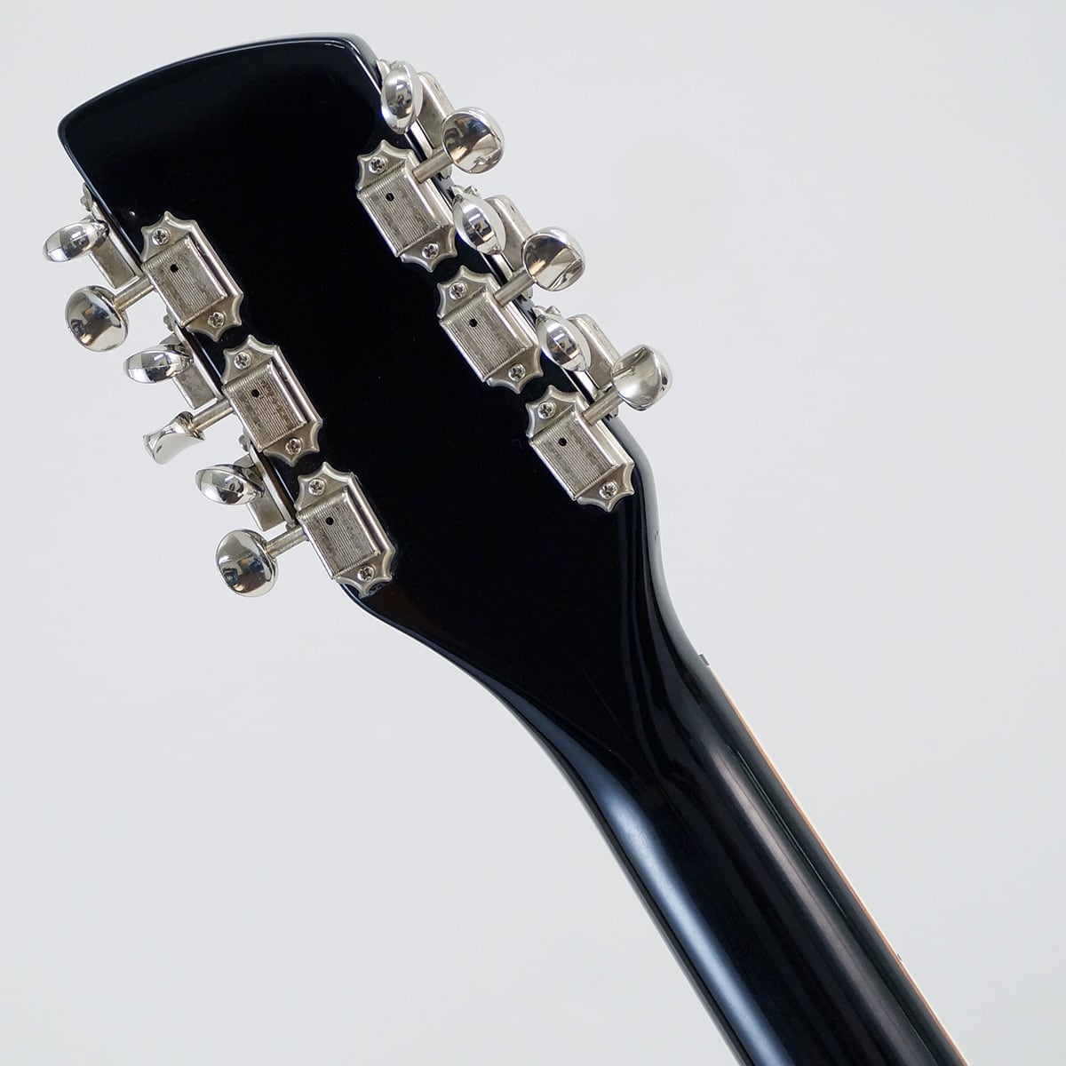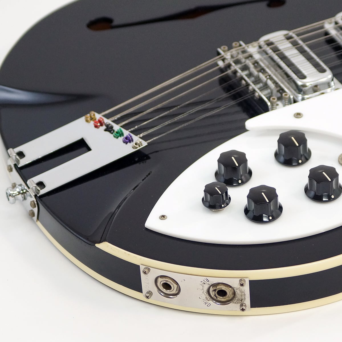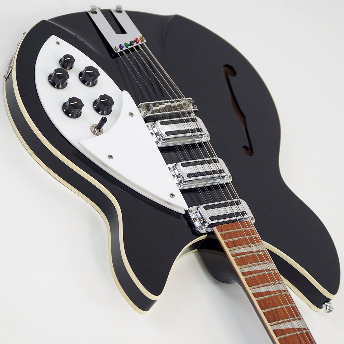 特徴的な約1/8インチ幅広くプロファイリングされた強靭な2ピースメイプルネックは、やや癖のあるリッケンバッカー12弦ギター特有のフィンガリングをよりシンプルにしていて、ラウンド加工されたジョイントヒール部とローズウッドフィンガーボードをマッチング。