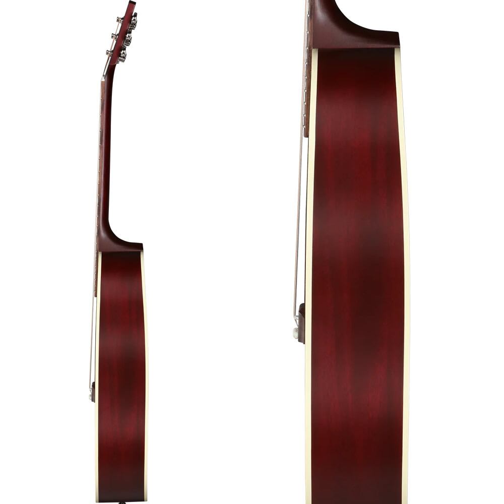 ピックガードにはハミングバードの世界的に有名なハチドリのグラフィクスをシンプル化したデザインを採用。サテン・ニトロセルロースラッカーによるサテン・ワインレッドで仕上げられています。