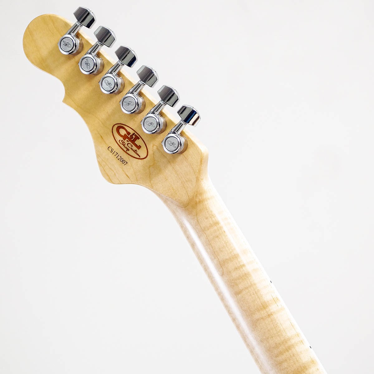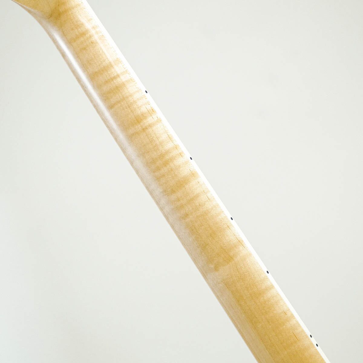 シェルピンクのマッチングヘッド仕様にべっ甲柄ピックガードを組み合せ、セルバインディングが施されたカリビアン・ローズウッド指板にブロックポジションマークを採用するなど、最高にクールなルックスを持つ一本です。更に、ネックには美しいフレイム杢が入ったメイプル材を採用し、カスタムショップの風格を感じさせる極上の一本に仕上がっています。