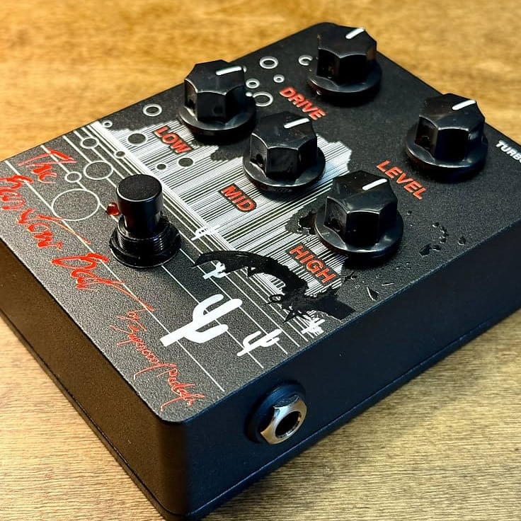 Supercool Pedals The Barstow Bat の限定ブラックバージョンは、極めて少量のみの生産となり、「TURBO」セクションには、希少なNOS(ニュー・オールド・ストック)のゲルマニウム製1n34aダイオードが採用され、内部のDIPスイッチで有効化出来ます。