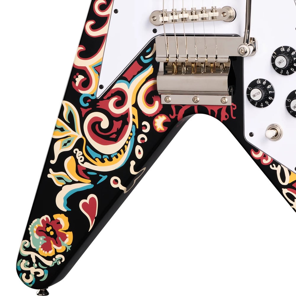 そして、Epiphoneとギブソンカスタムおよびヘンドリックス家との連携によって、1967年から1969年にかけてジミが多用したギター「Jimi Hendrix “Love Drops” Flying V」の復刻モデルが実現致しました。