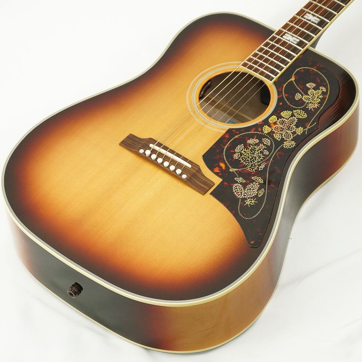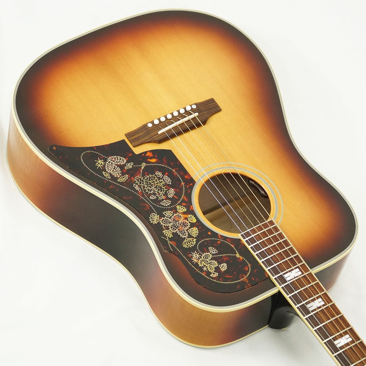 単板のシトカ・スプルース・トップ、単板のフィガード・メイプル・バック&サイド、インディアン・ローズウッド指板、伝統的なハンドスキャロップトXブレーシング、金メッキの施されたゴトー・キーストーン・チューナー、「ラリアットとサボテン」をテーマにした象徴的なピックガード、パワフルなトーンを生む25.5インチのロングスケール等、充実の仕様を誇ります。