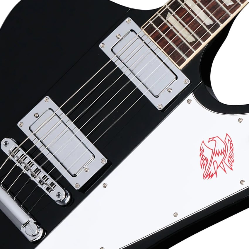 ファイアーバードは最も特徴的なルックスを誇るギター・デザインの一つであり、Firebird Platypusはその独自の外観とともに、この伝説的なギターをさらに一段階先へと導きます。トーンもルックス同様にユニークになっています。歯切れが良く、製造当時の仕様に忠実なアルニコ5のファイアーバード・ミニハムバッカー™ピックアップを2基搭載し、クリーンで演奏したときには鐘のような鈴鳴り感あるサウンドを、歪ませたときにはバンドアンサンブルでも際立つロックやブルースに最適なトーンを奏でます。ピックアップごとに独立したボリュームとトーンを備えているため、細やかなサウンド・メイキングが可能となっており、ピックガードにはおなじみのファイアーバード(火の鳥)のグラフィクスがホット・スタンピング(箔押し)により刻印されています。