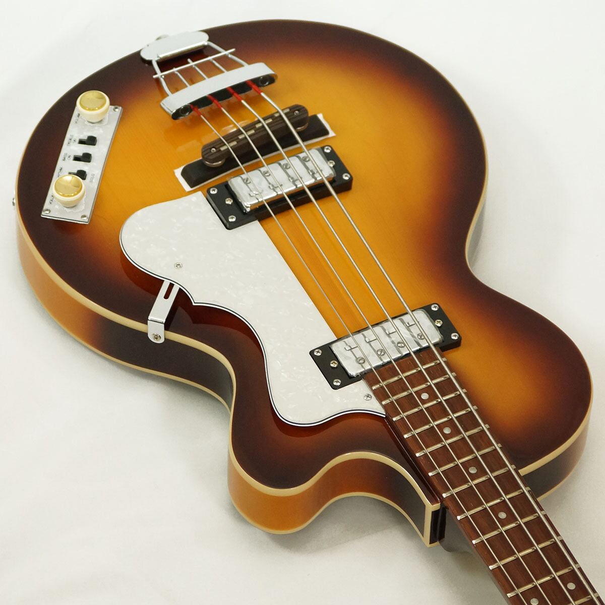1960年代から続くヘフナー伝統のセミホロウ構造と、コンパクトで取り回しの良いシングルカッタウェイ・ボディを採用。バイオリンベースに比べてややソリッド感のあるルックスながら、ヘフナーらしいウッディで温かみのある低音は健在です。
