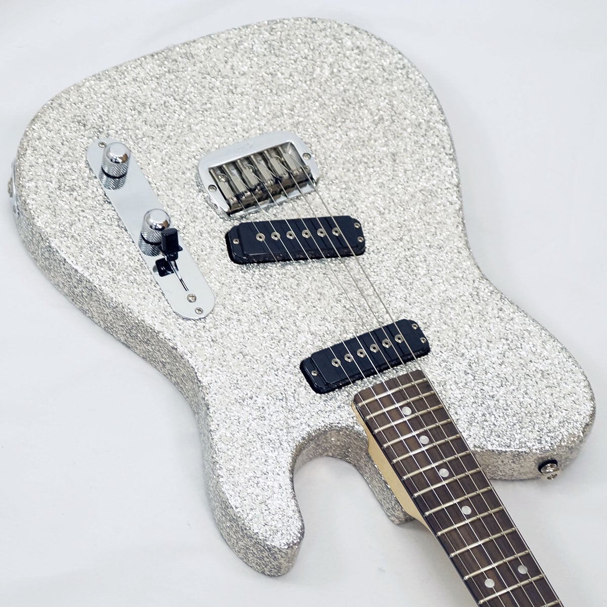 ピックガードを排したことで、Silver Metal Flakeの煌びやかな質感とボディシェイプがダイレクトに主張され、ステージ映えも抜群。クラシックなASATのフォルムに、モダンかつアグレッシブな美意識を融合させた、BTOならではの特別なASAT Specialです。