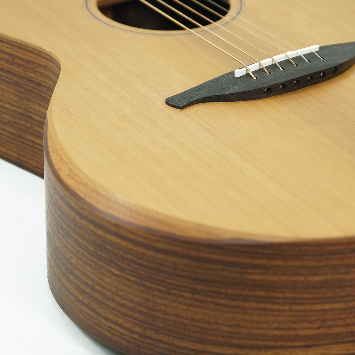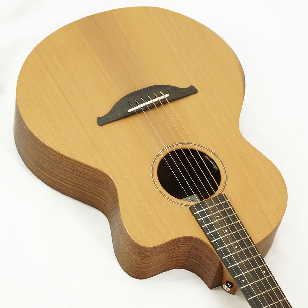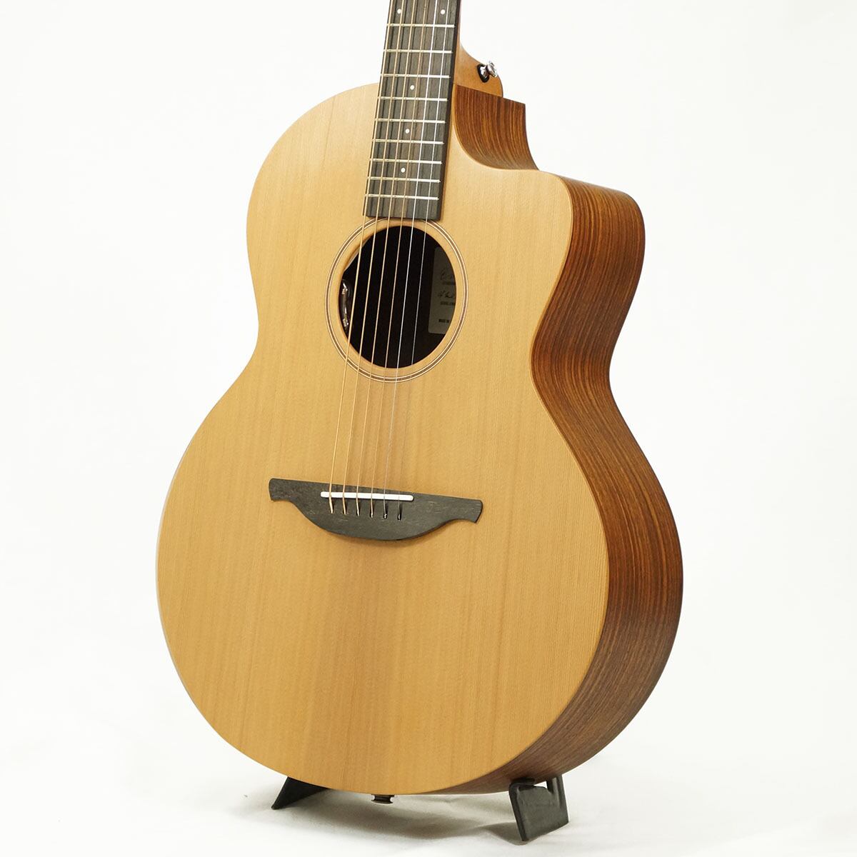 こちらの「S03」は、シダー単板TOPにインディアン・ローズウッドSIDE&BACK(5PC)、マホガニーNECKにエボニー指板、24-4/5インチ・スケールを採用。カッタウェイやサウンドボックス・ベベル(エルボー・コンター)の採用による圧倒的な操作性の高さに加え、LR Baggs Element VTC を搭載したエレアコ仕様となっている事で、幅広く活躍出来る1本です。