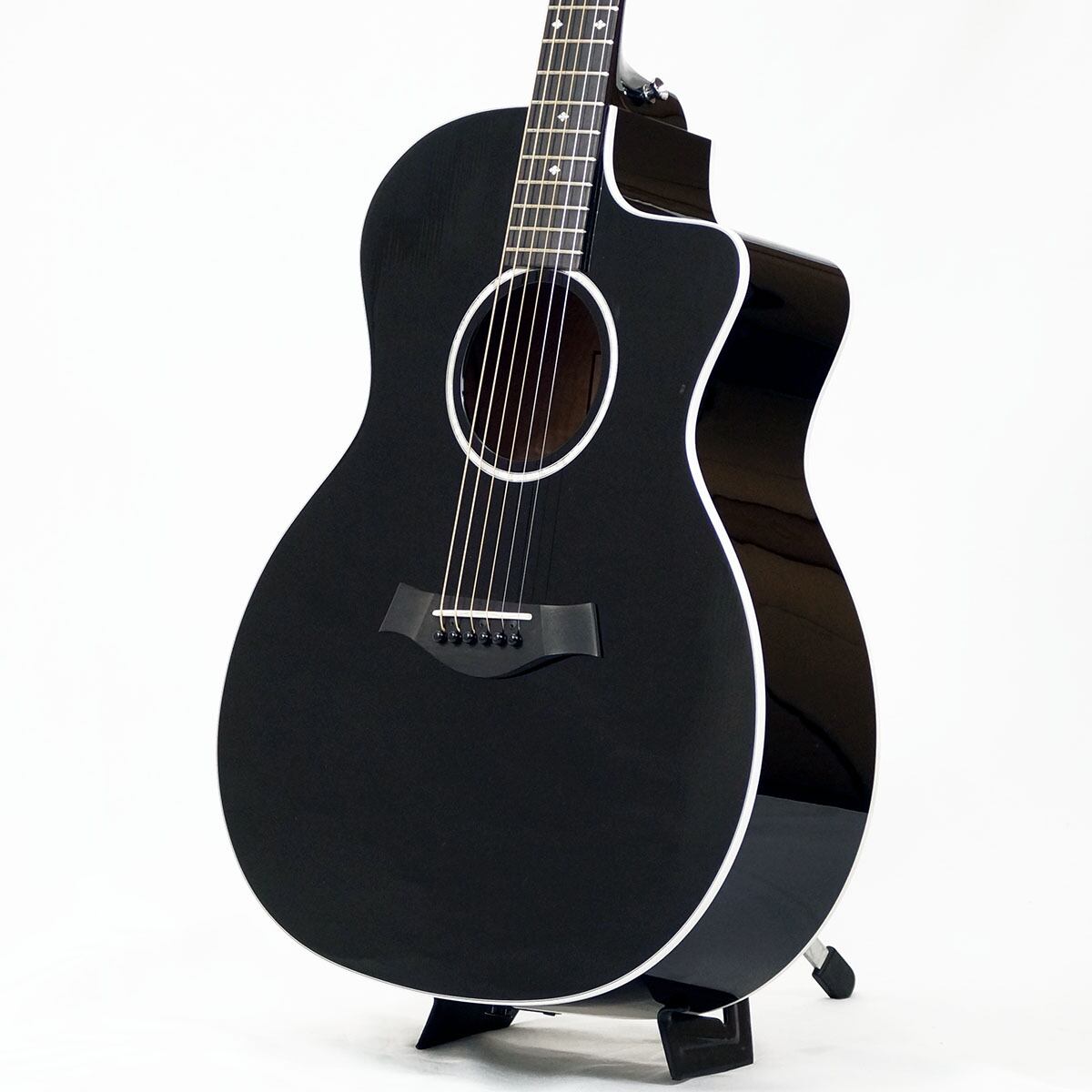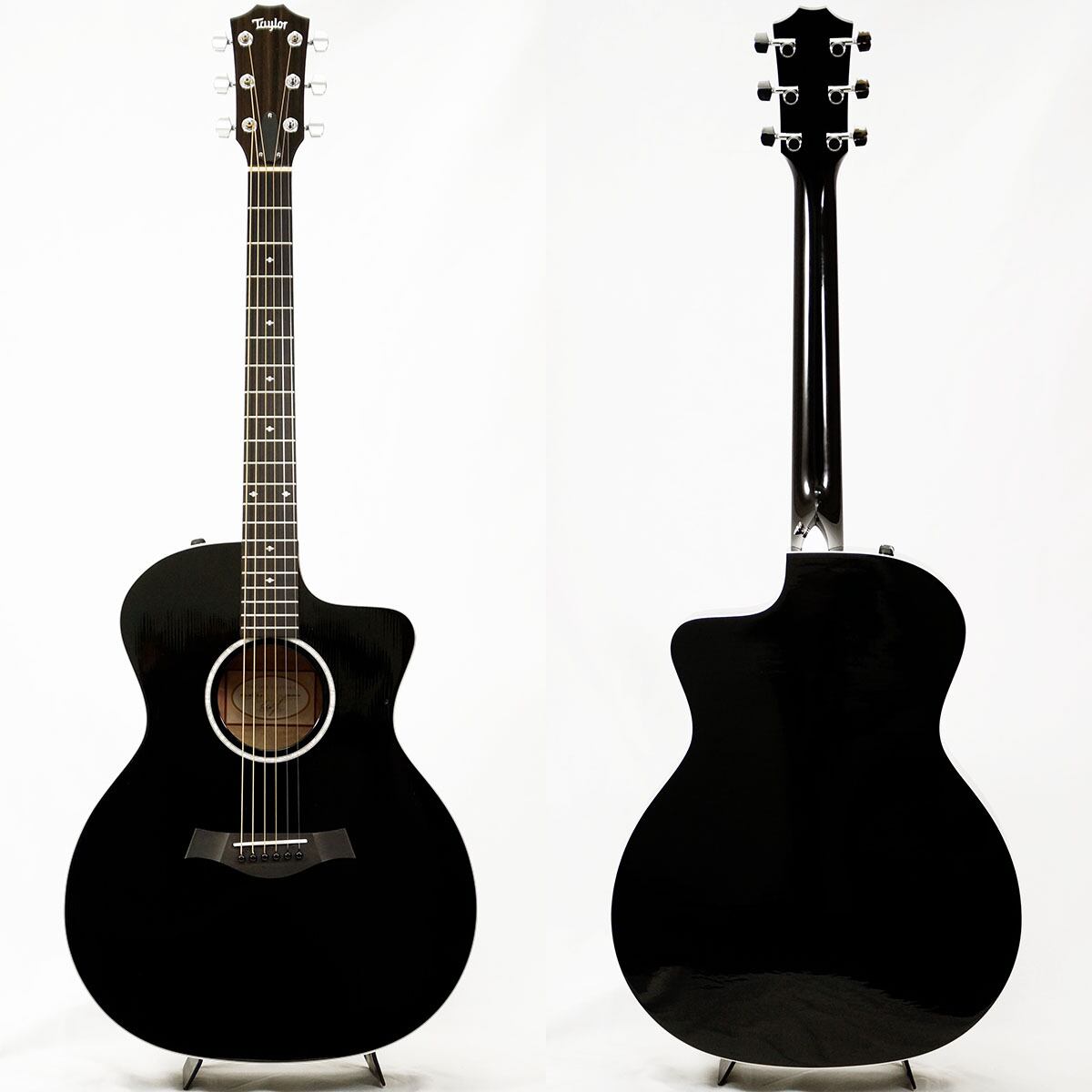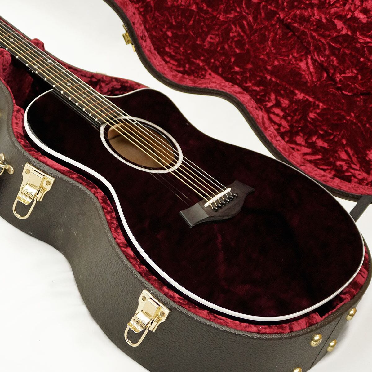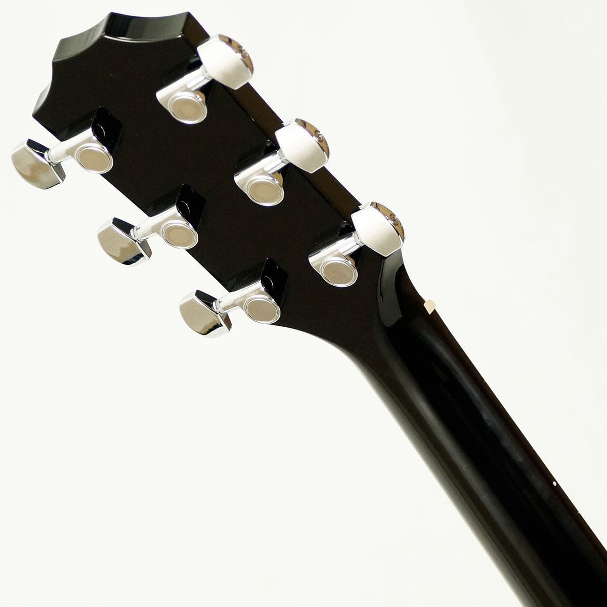 テイラーの中では珍しい、グロスフィニッシュのブラックカラーにエボニー指板の組み合わせによってクールな印象を与える人気モデルです。