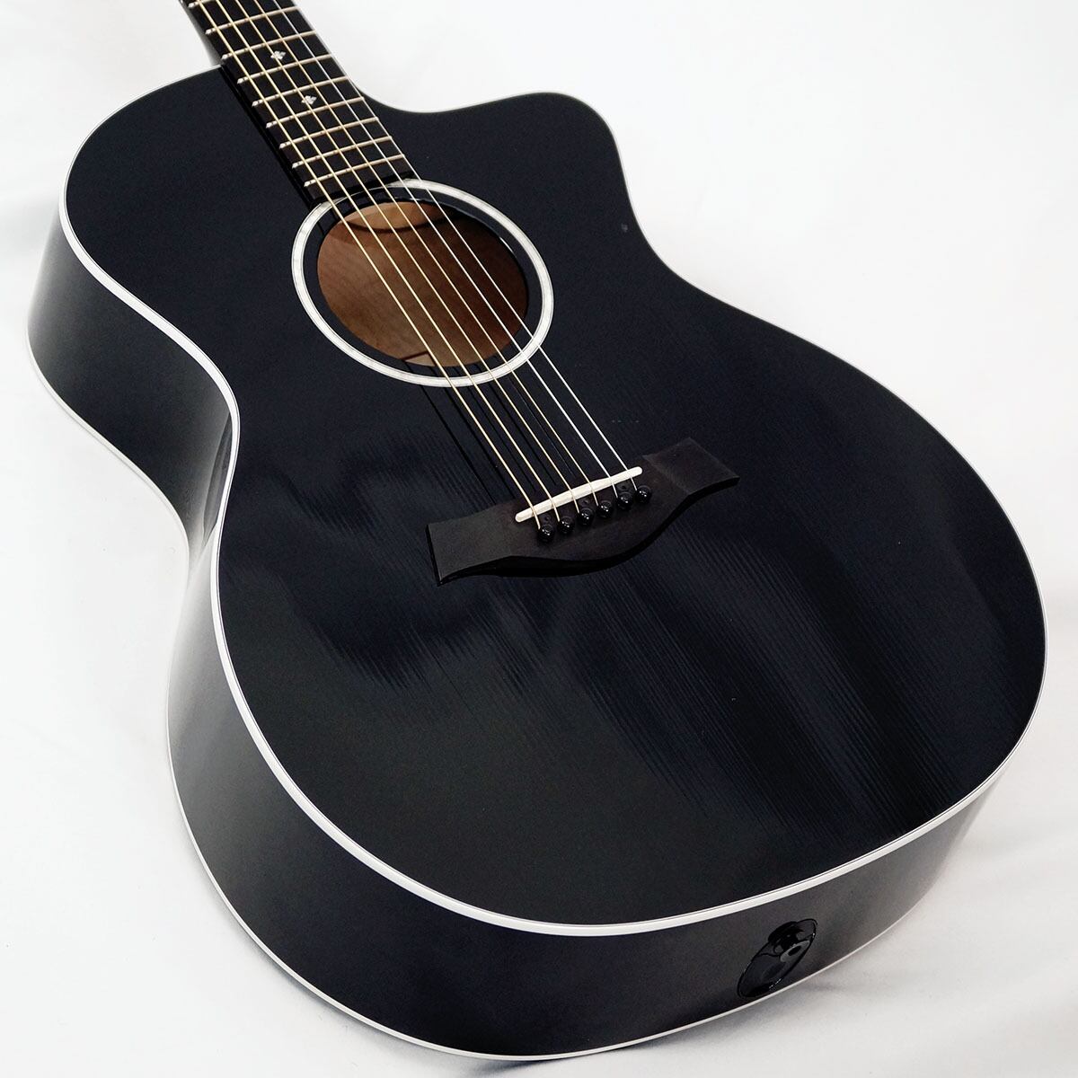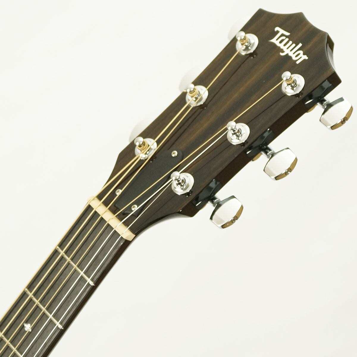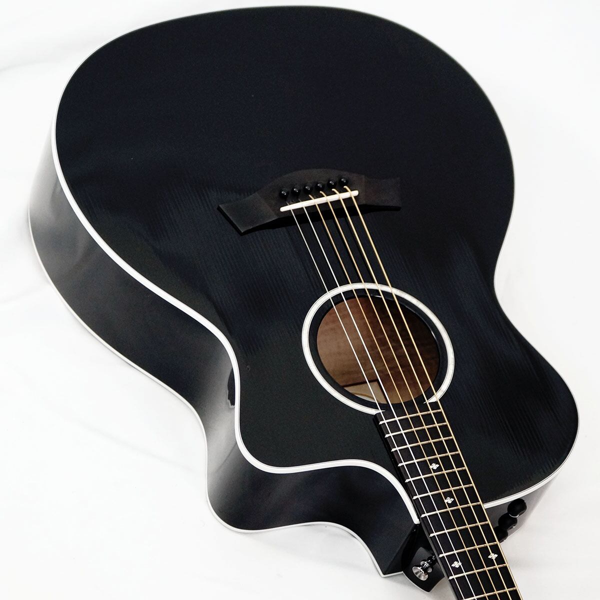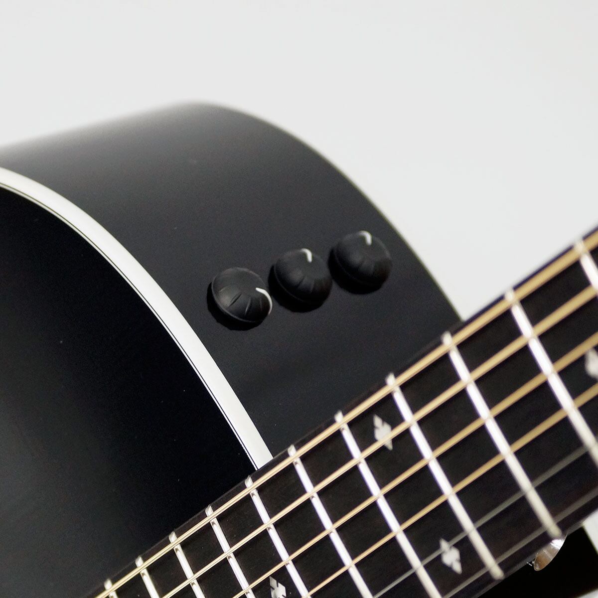 テイラーの中では珍しい、グロスフィニッシュのブラックカラーにエボニー指板の組み合わせによってクールな印象を与える人気モデルです。
