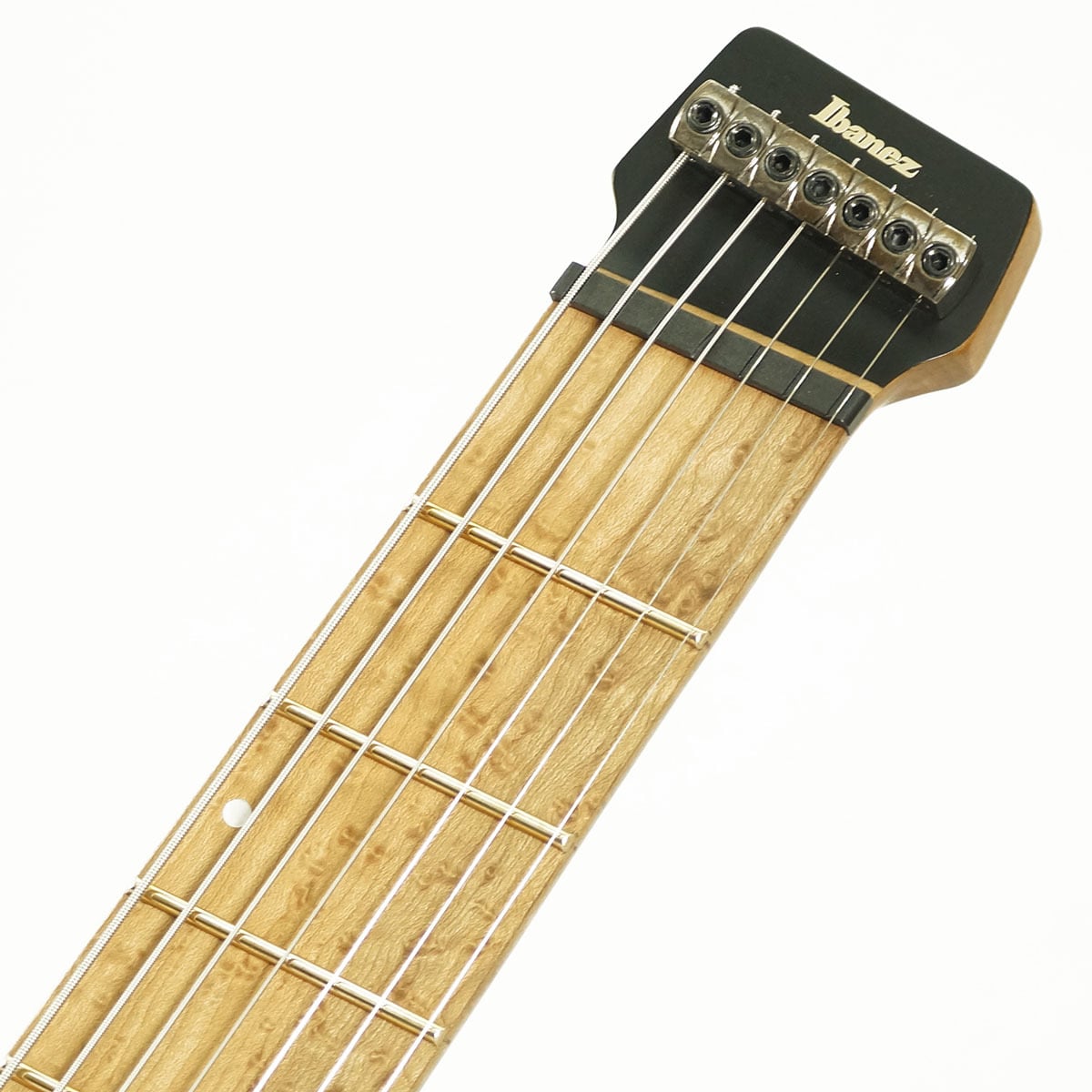 ネックはローステッド・メイプル材とブビンガ材の5pc構造に、ローステッド・バーズアイ・メイプル指板を採用しています。また、全てのフレットを8度角で均等に傾斜させ、より自然な感覚での演奏ができることを狙った仕様「Slanted frets」を採用している点も見逃せないポイント。さらに、ジャンボ・サイズのステンレス製フレットを採用している事で、メンテナンス製に優れ、音の立ち上がりが早く、コード弾きでも分離が良く、ノート弾きでもクリアな出音を特長としています。