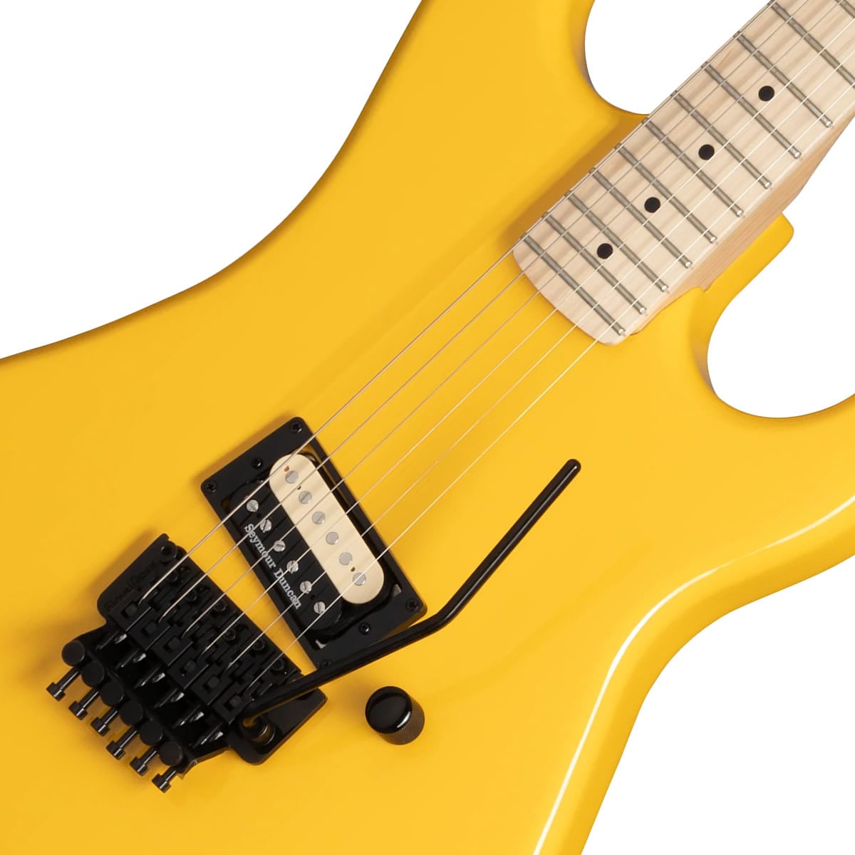 当モデルでは、メイプル・ボディ、ハードメイプル・ネック、セイモア・ダンカン® JB™ゼブラコイル・ハムバッカーを一基、フロイドローズ® 1000シリーズ・トレモロ、R2 1000シリーズ・ロッキングナットを搭載しています。