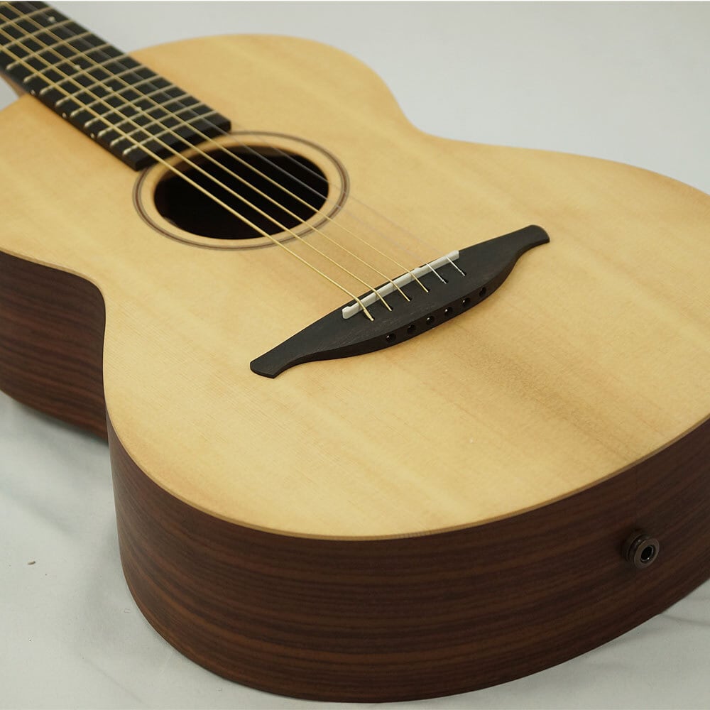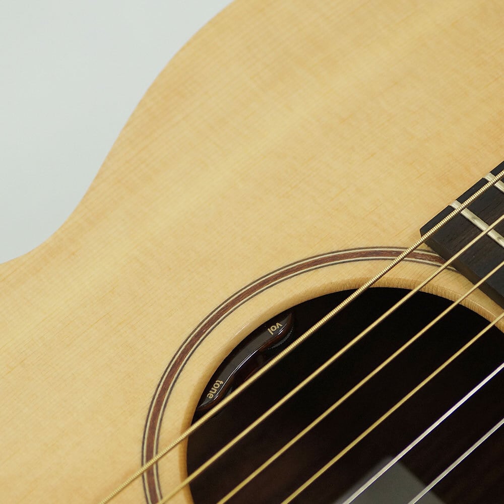 こちらの「W02」は、シトカ・スプルース単板TOPにインディアン・ローズウッドSIDE&BACK(5PC)、マホガニーNECKにエボニー指板、24インチ・スケールを採用。LR Baggs Element VTC を搭載したエレアコ仕様となっており、幅広く活躍出来る1本です。