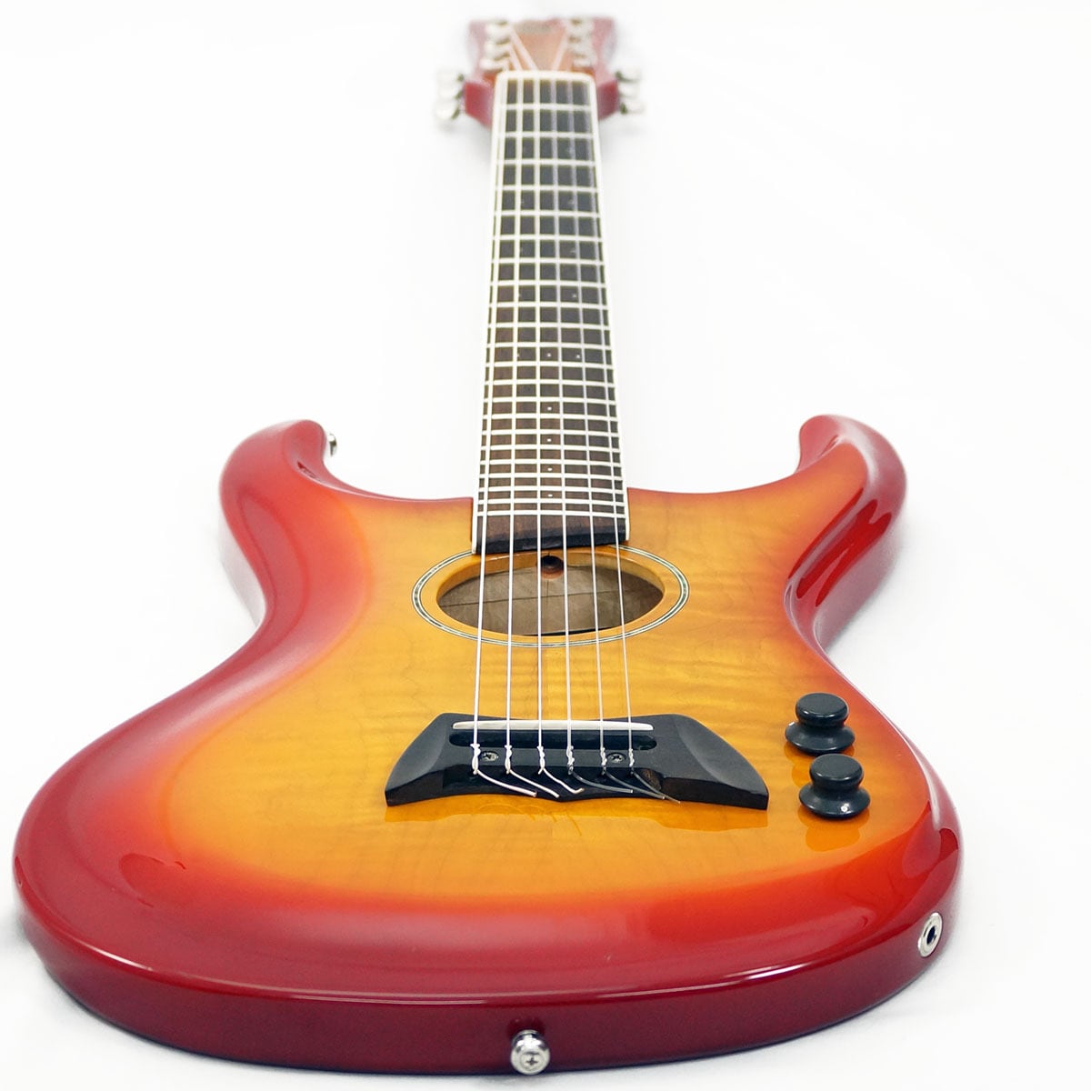 また、エレキギターに近い演奏性も大きな魅力で、普段エレキをメインに使用されるプレイヤーにも違和感なく手に取っていただける仕上がりとなっています。