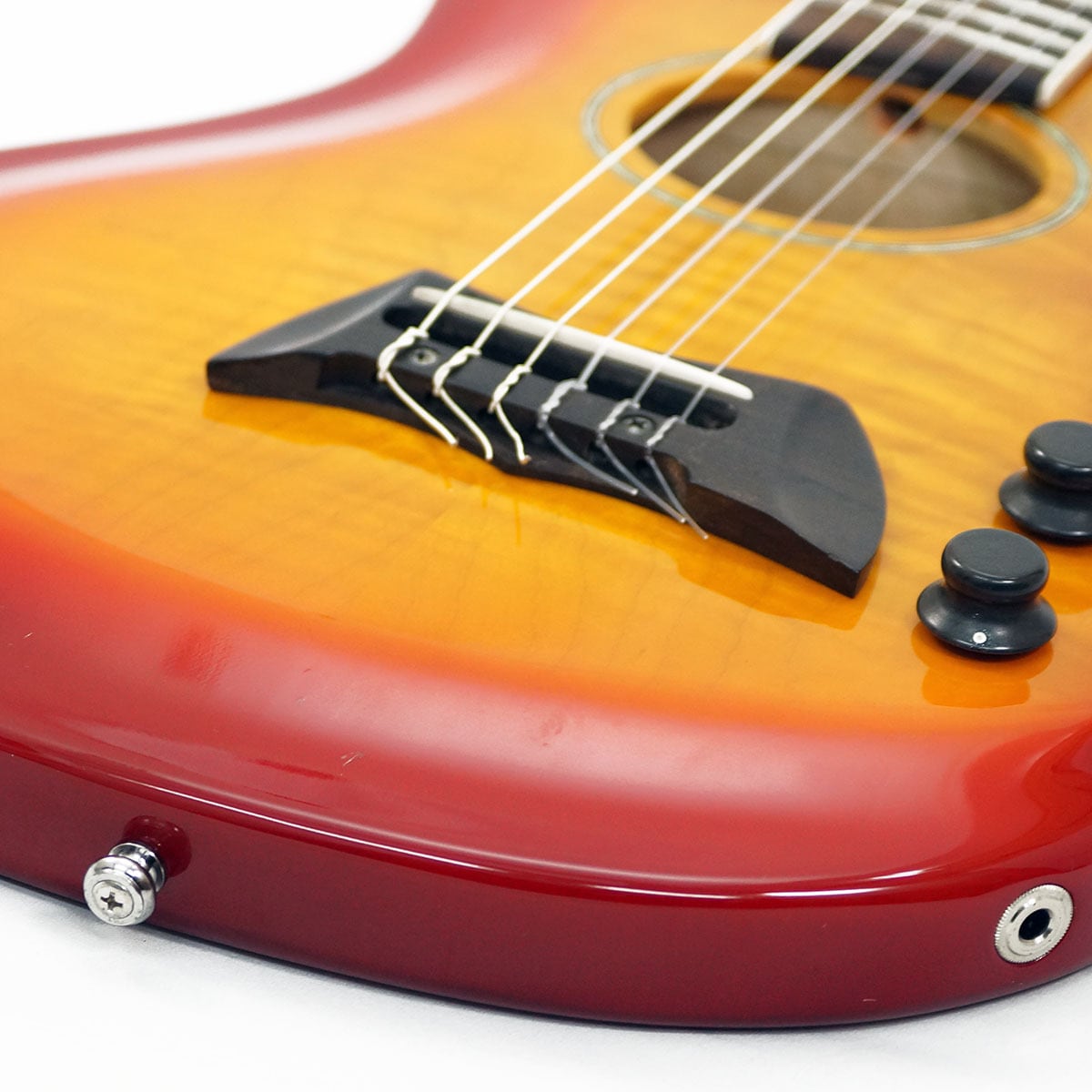 薄胴のボディ構造とピエゾピックアップにより、ライブやレコーディングにおいても扱いやすく、ナイロン弦特有の柔らかさと、バンドアンサンブルの中でも埋もれない明瞭な輪郭を両立。クラシック用途にとどまらず、ポップスやフュージョン、ソロプレイまで幅広く対応します。