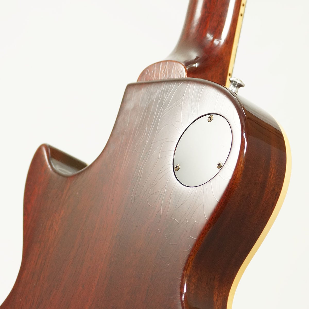 なお、こちらの個体はフレット周りの仕上げ(フレットエッジバインディングを廃した仕様)及び、やや細めのフレット形状から、リフレットが施されていると推察されます。