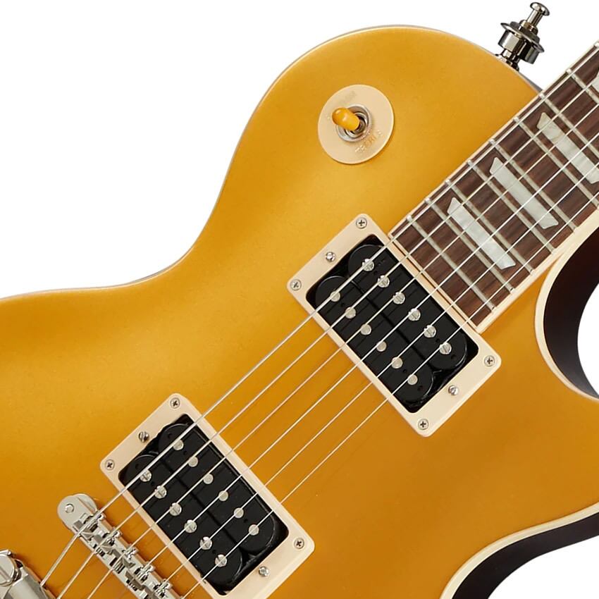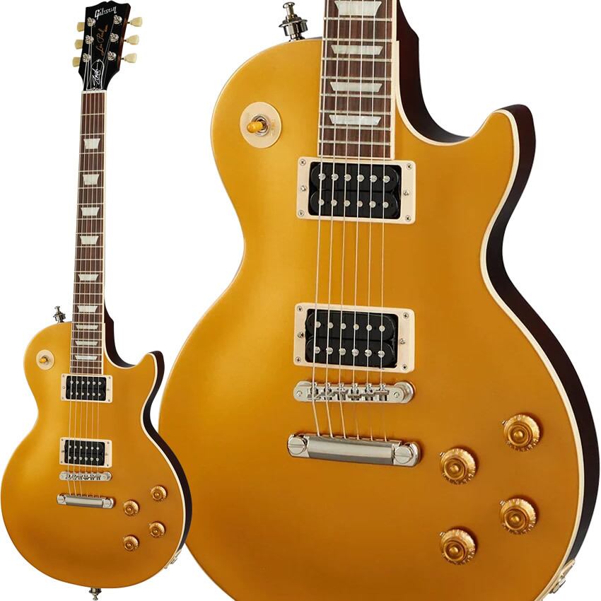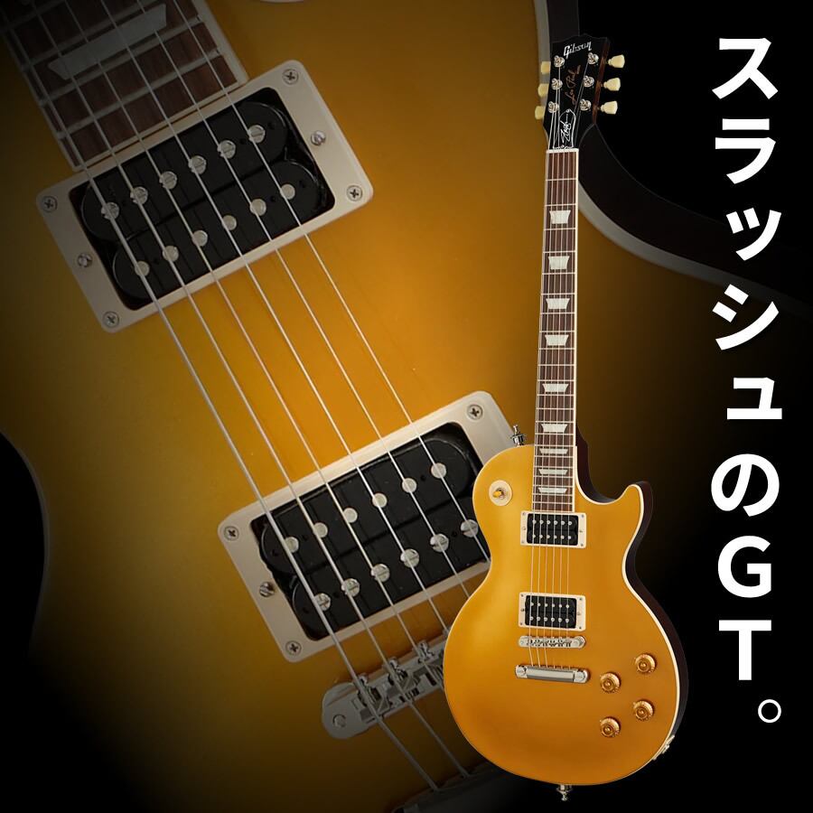 ギブソン スラッシュ・コレクション による「Slash “Victoria” Les Paul Standard Goldtop」。このレスポールは、スラッシュがキャリアの中で使用してきた影響力のあるギブソン・ギターを代表するもので、世界中の様々な世代のプレイヤーたちにインスピレーションを与えてきました。スラッシュ・コレクションのギブソン・ギターは、今日のスラッシュのライブ・パフォーマンスで活躍しています。