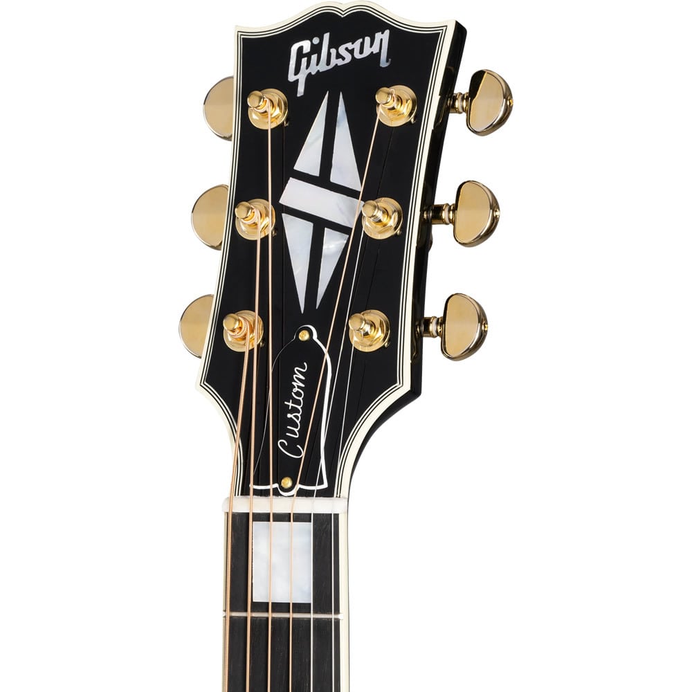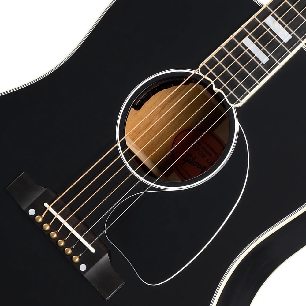 エボニーカラーのニトロセルロースラッカー・フィニッシュ、トップとバックの多層バインディング、レスポール・スタイルのバインディングが施されたヘッドストック、マザー・オブ・パールのカスタム・スプリット・ダイヤモンド・インレイ、バインディングの施されたエボニー指板、マザー・オブ・パールのカスタム・ブロック・インレイ、ゴールドのGrover® Rotomatic®チューナー、ブラス・ブリッジピン等、充実した仕様を誇ります。
