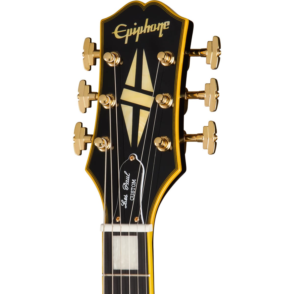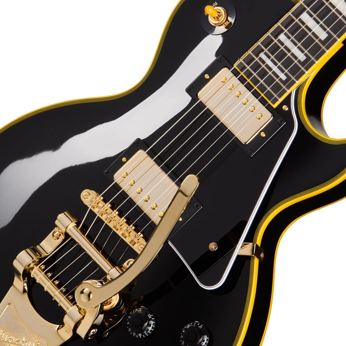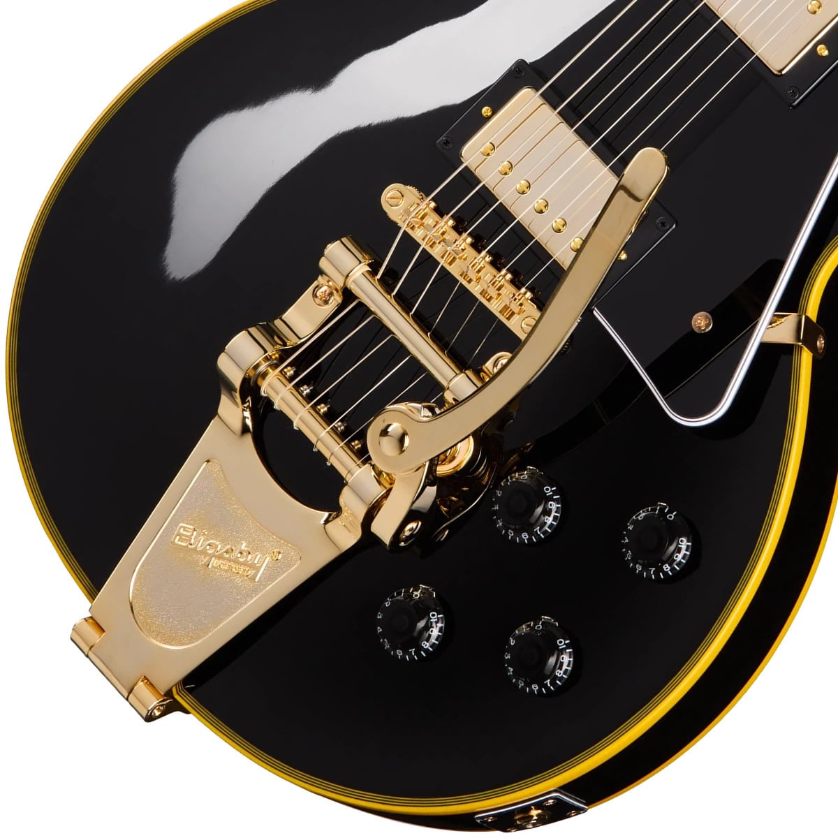 サウンド面では、パンチのあるトーンを生み出すEpiphone ProBucker™ Customピックアップを2基搭載。各ピックアップには独立したボリューム/トーンコントロールが備えられ、CTS®製ポットを採用することで高い信頼性と優れた音作りの自由度を実現しています。ハードウェアにはLes Paul Customに相応しくゴールドパーツを採用し、LockTone™ Tune-O-Matic™ブリッジ、Groverチューナー、Bigsby B70ビブラート・テイルピースを搭載。これらの組み合わせにより、見た目の美しさだけでなく、非常に幅広いサウンドバリエーションを誇る1本に仕上がっています。