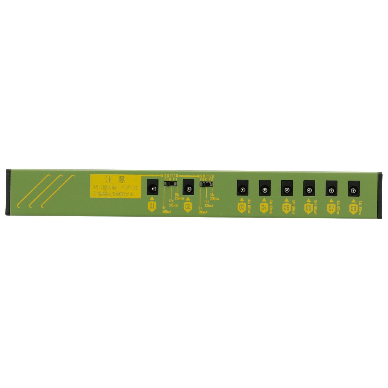 9V500mA,12V375mA,18V250mAの三種類の電圧に対応する切り替えポートを2系統装備。幅広いペダルに対応します。