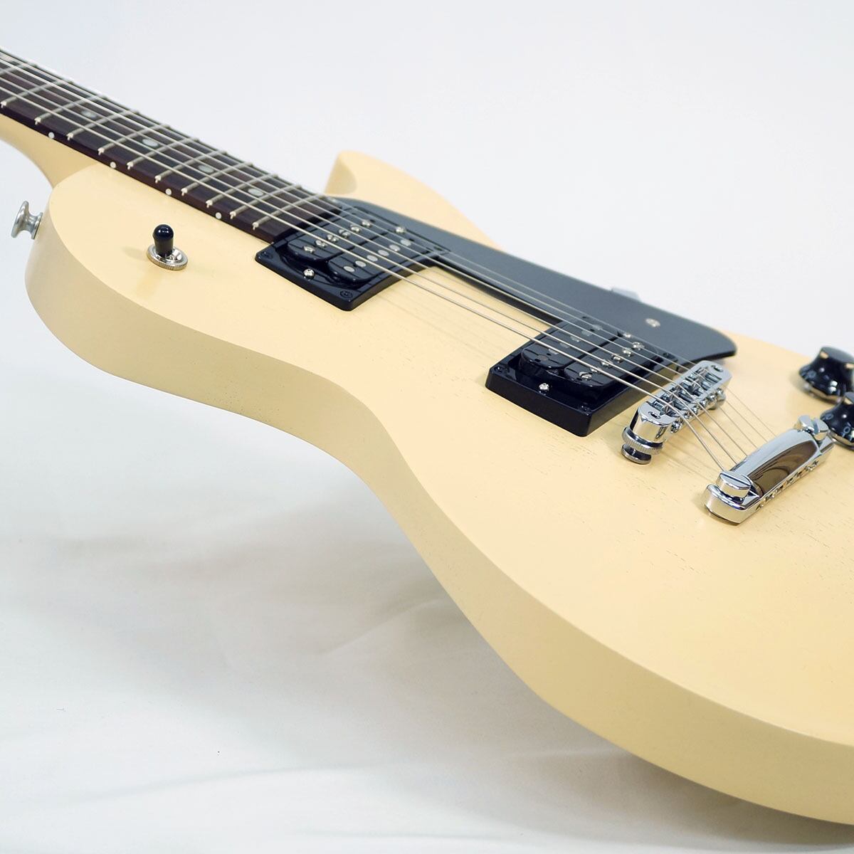 また、フィニッシュはサテン・ニトロセルロース・ラッカーで仕上げられ、マッチング・ヘッドストック(ボディーとヘッドのカラーが同色)も採用している事で、他のレスポールとは一線を画す圧倒的な個性を放ちます。