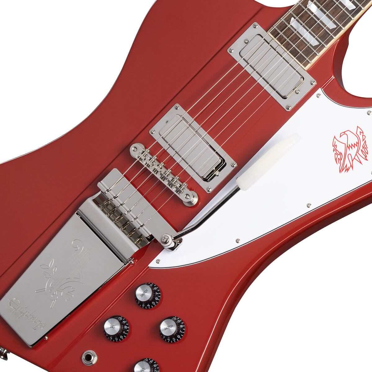 また、ヴィンテージの1963年製 Firebird V の研ぎ澄まされたシンプルな仕様を踏襲しながらも、エレクトロニクス部には本格的パーツ群を採用。アルニコ 5 マグネットを搭載したギブソンUSA ファイヤーバード・ミニ・ハムバッカー ピックアップ™ 、CTS® ポテンショメーター、Mallory™ コンデンサー、Switchcraft® 3ウェイ・ピックアップ・セレクター・スイッチ、Switchcraft® 1/4 "アウトプット・ジャックを装備。クラシックなFirebird V のルックスだけでなくサウンド面においても最高の仕上がりとなります。